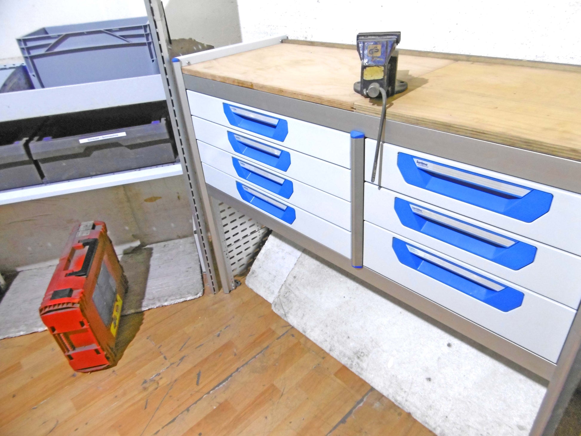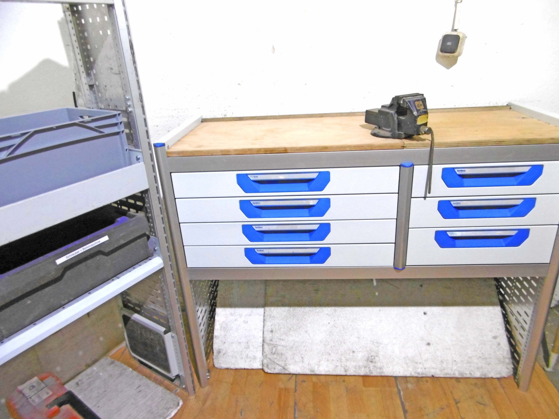 - Bild 1 (linke Seite): 7 x Schübe, oben Werkbank ohne Schraubstock, unten offen