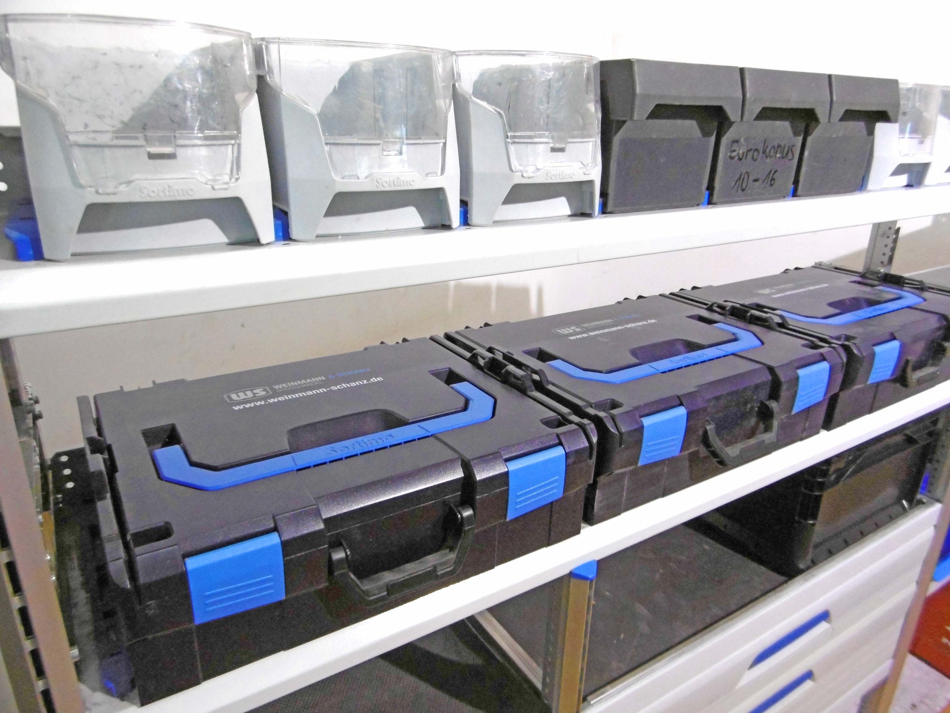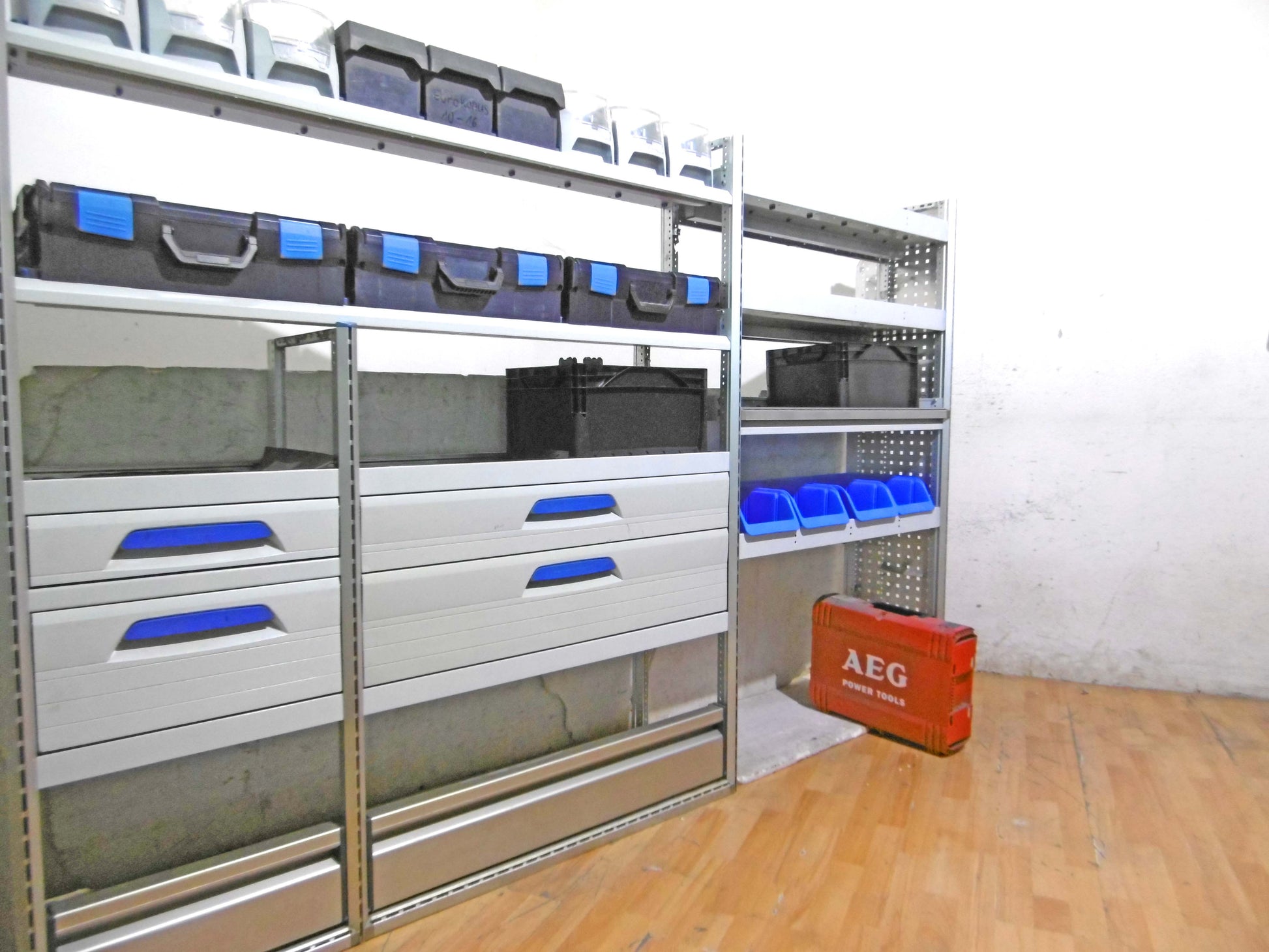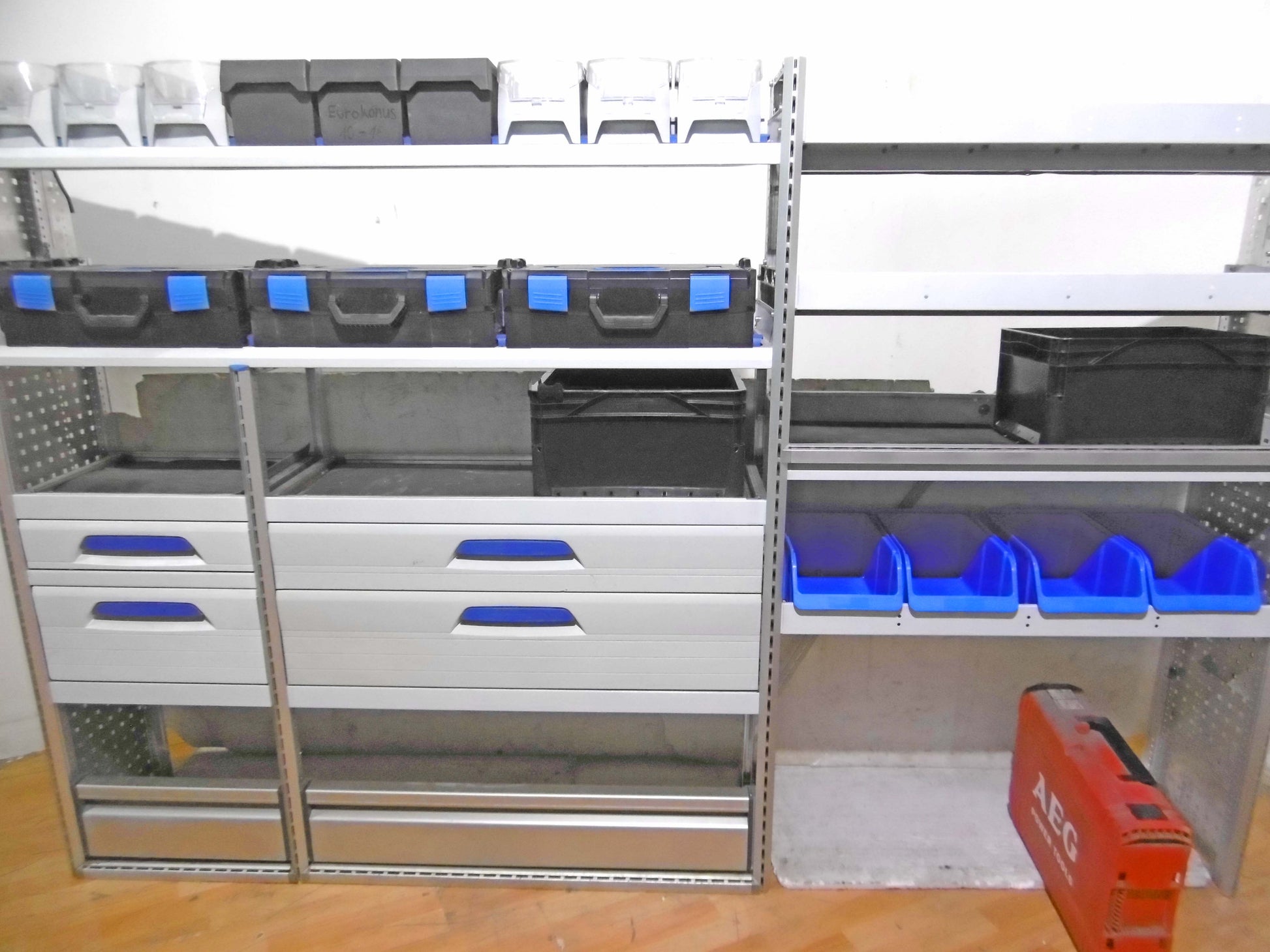 - Bild 1 (rechte Seite): 4 x Schubladen 3 x herausnehmbare Koffer (NEU), div. Sortierboxen, Trennbleche, unten Klappe bzw. offenoffen
