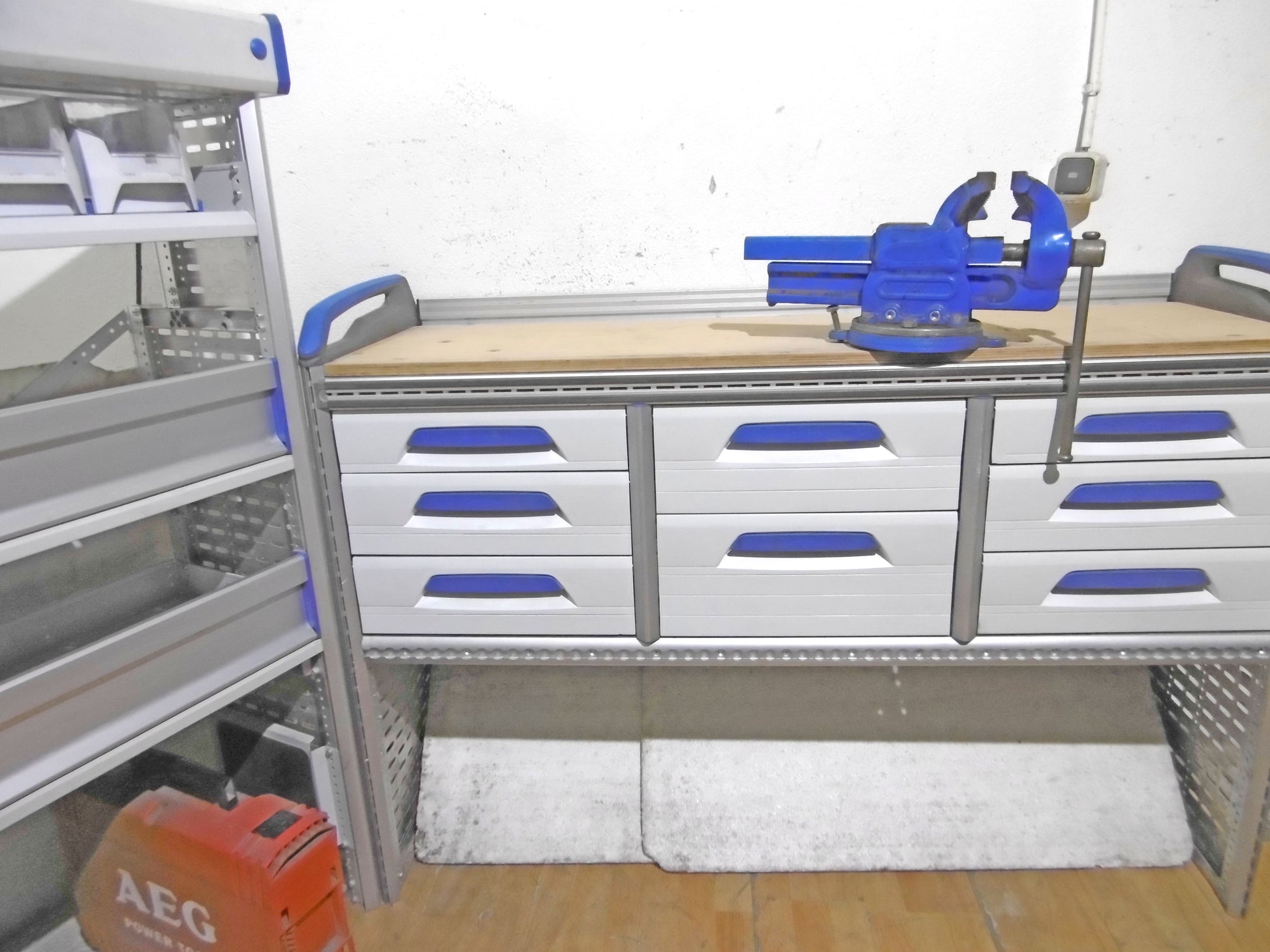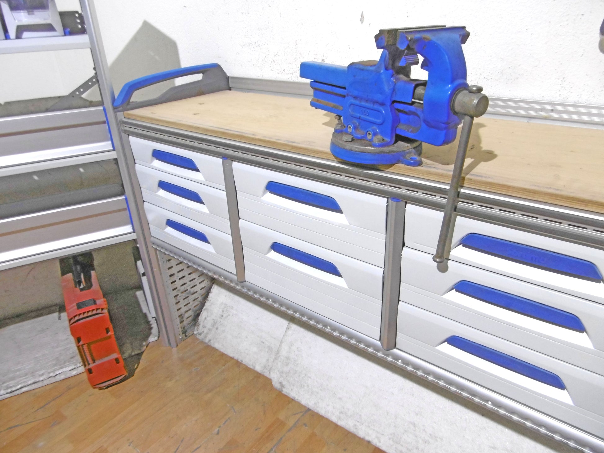- Bild 1 (rechte Seite): 8 x Schübe, oben Werkbank mit Schraubstock, unten offen
