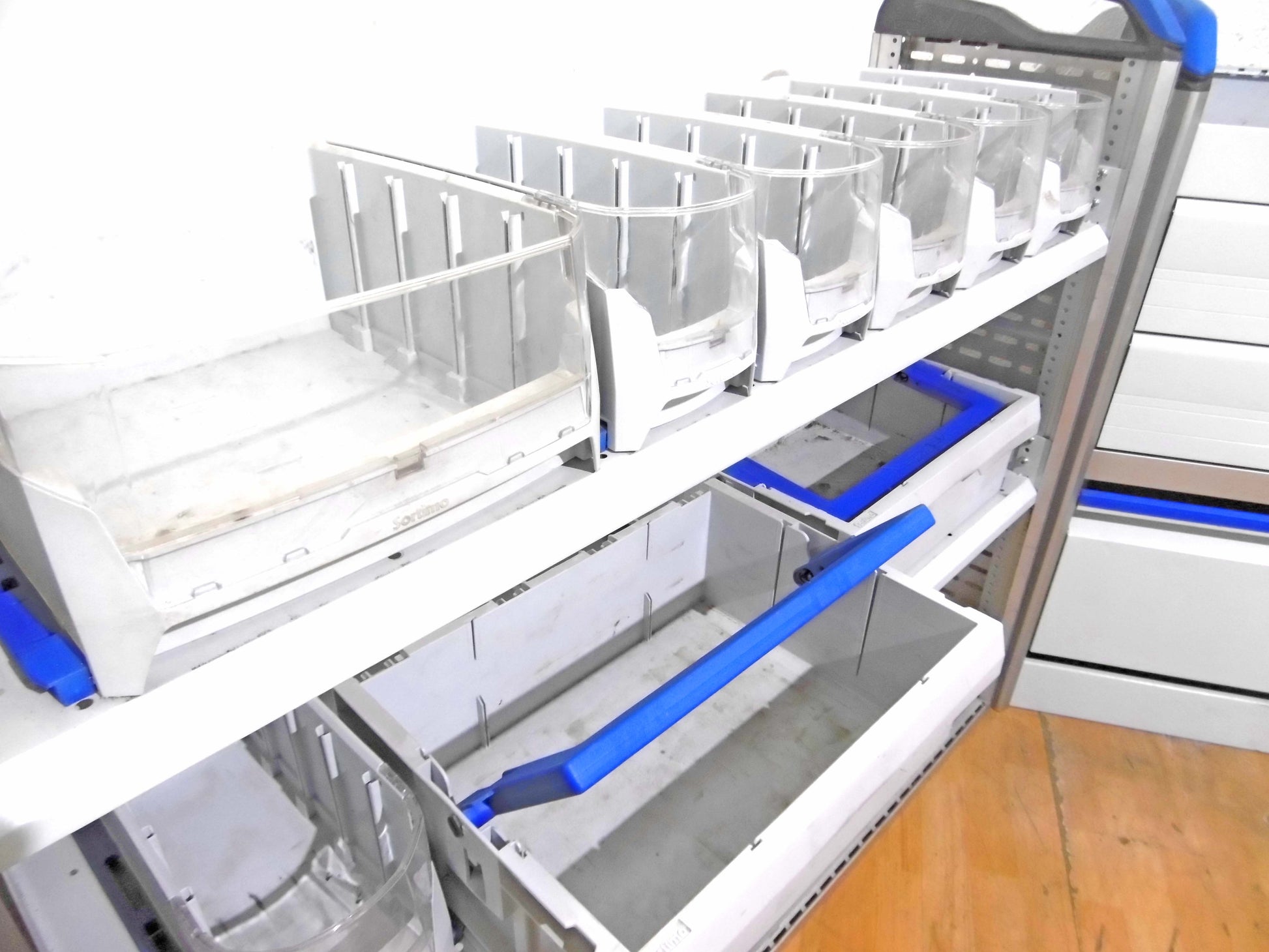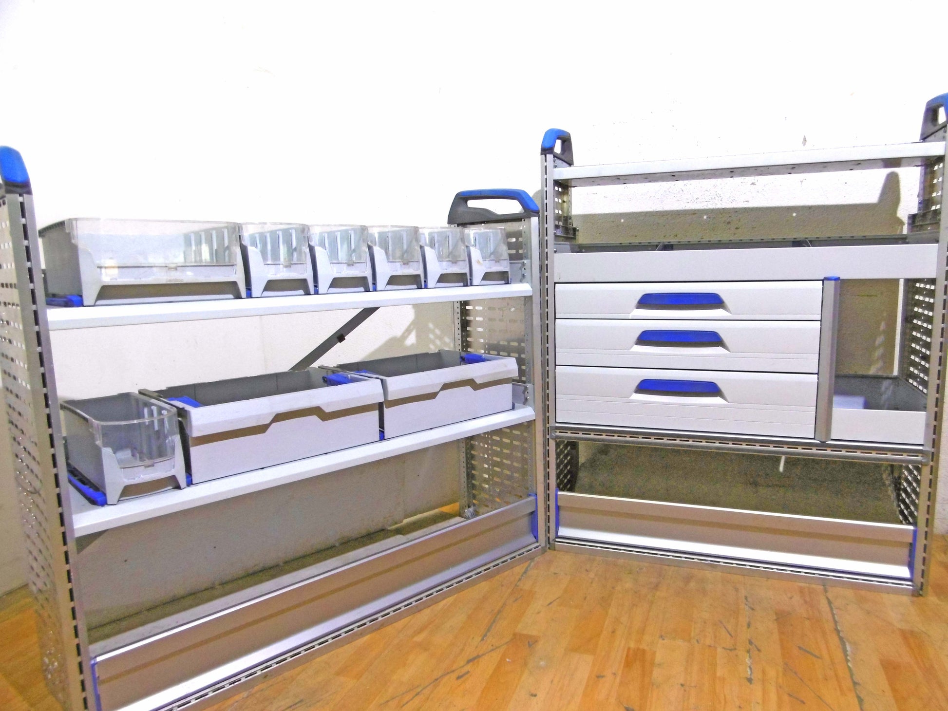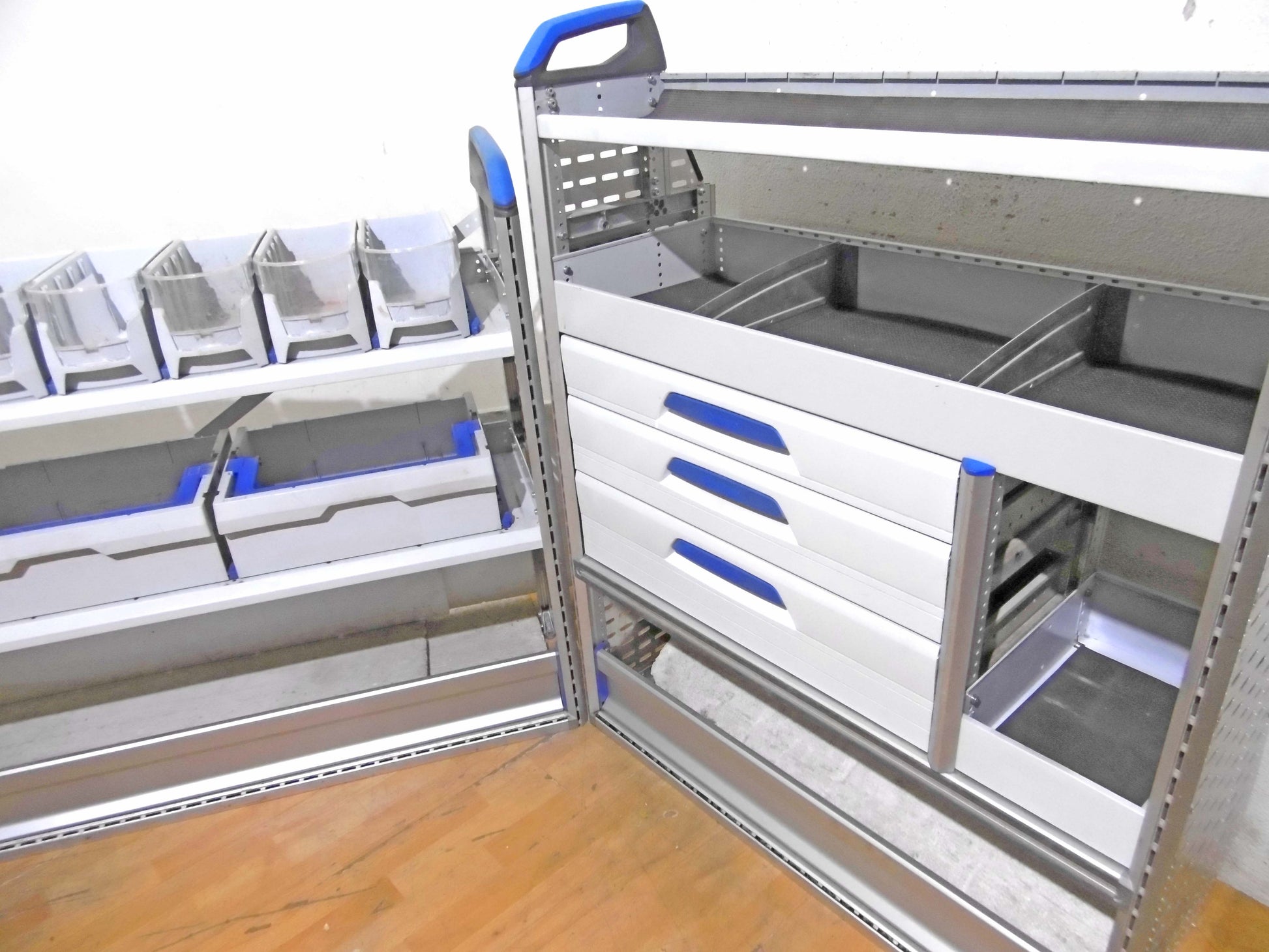 - Bild 1 (linke Seite): div. Sortierboxen, 2 x herausnehmbare Koffer, unten Klappe