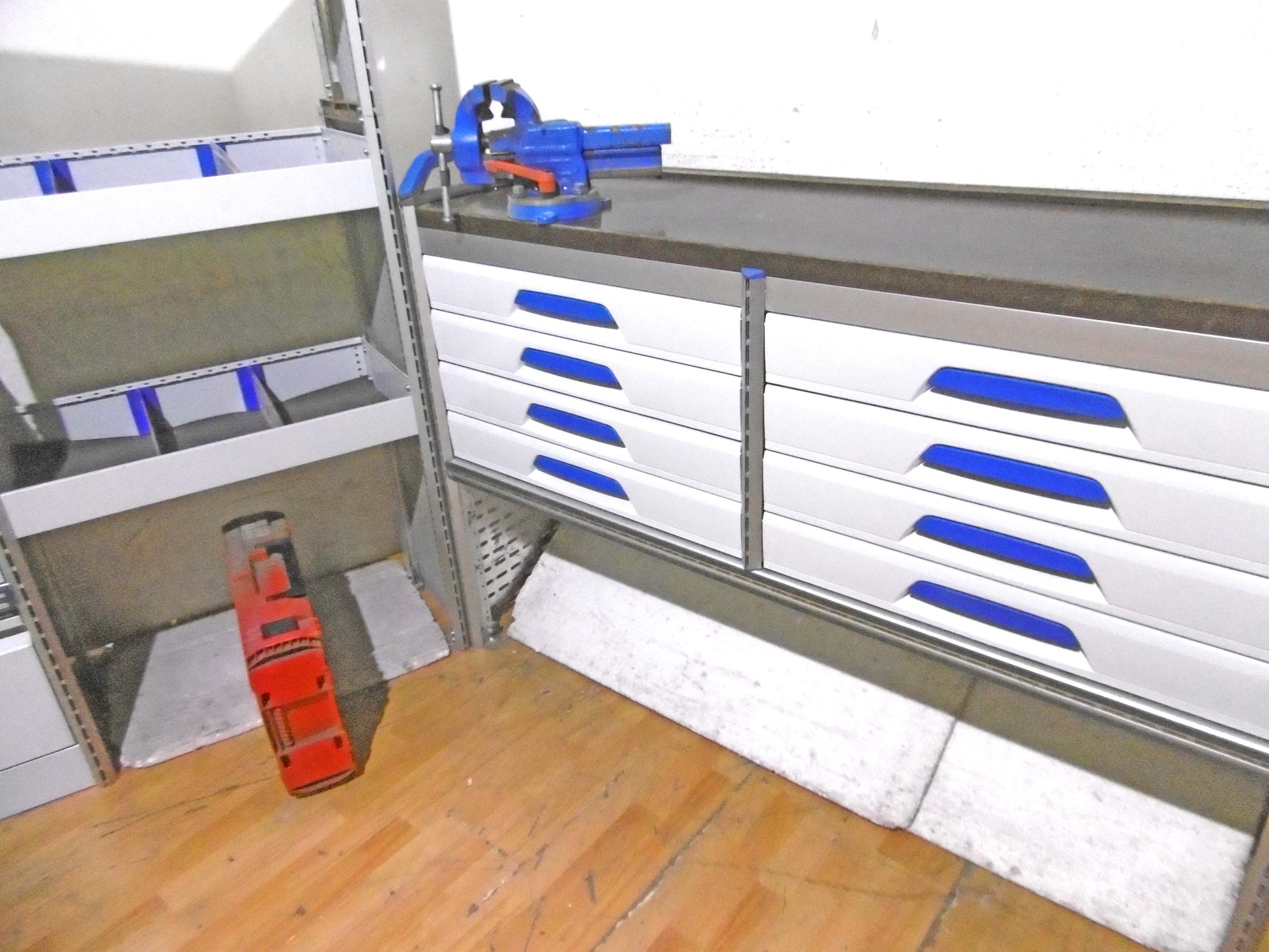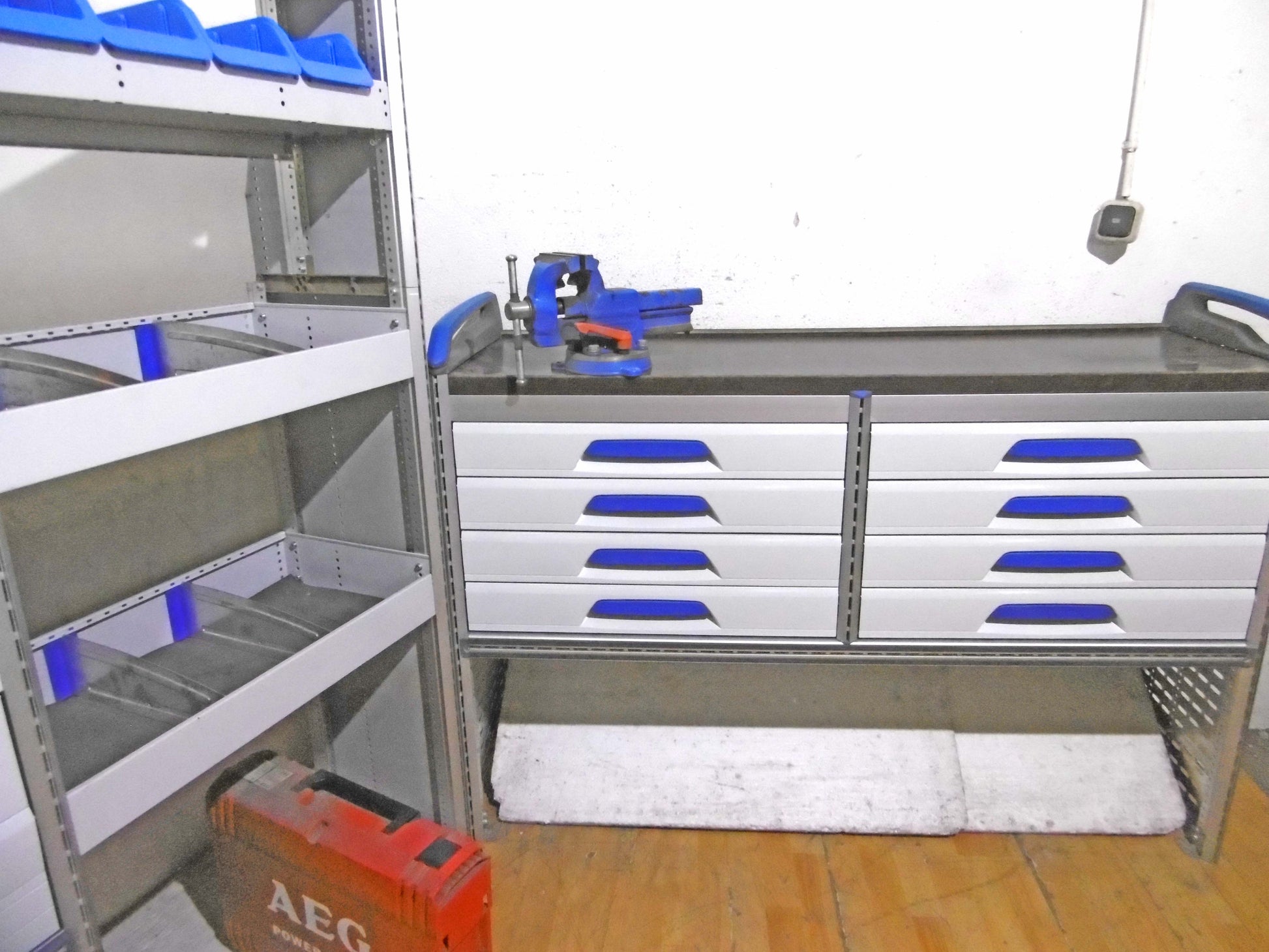 Bild 1 (rehte Seite): 8 x Schübe, Werkbank mit Schraubstock, unten offen